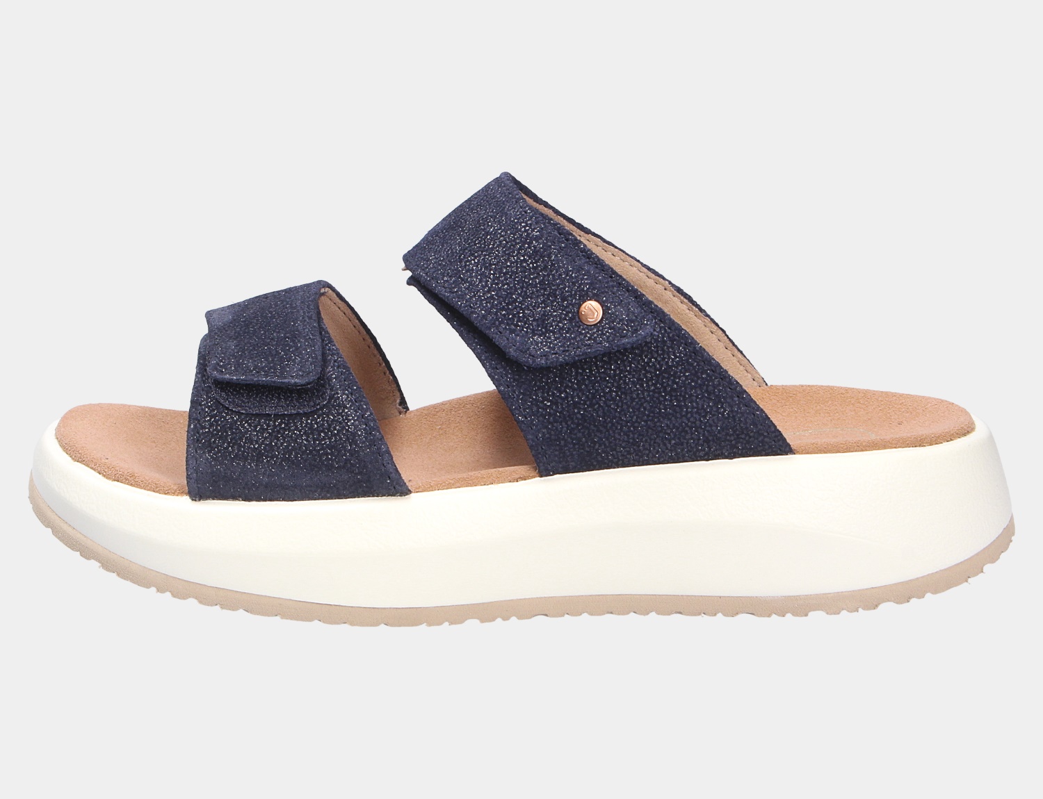 Luftig leichtes gehen mit Comfort die Pantolette VIENNA II DARK BLUE aus dem Hause JOYA Hier wird jeder Fuß verwöhnt. Besonders das weiche Veloursleder schmeichelt jedem, hat eine samtartige Oberfläche und ist sehr atmungsaktiv. Innen ist der Schuh mit einem elastischen sowie atmungsaktiven Textil augestattet. Das Fußbett ist aus Textil und nicht auswechselbar. Auf diesen Schuh freuen sich besonders etwas breitere Füße:Die Weite H bietet hier ausreichend Platz. Der Keilabsatz hat eine Höhe von cirka 1 cm ,die Sohlenkategorie emotion steht für Freude am Stehen und Gehen.Die weich-elastische Joya Sohle dämpft jeden Stoß ab und unterstützt dadurch effektiv die Entlastung von Rücken und Gelenken. Das Ergebnis: ein einzigartiger Gehkomfort. Ideal für Menschen, die sich und ihre Füße mit einem einzigartig weichen Geh-Gefühl verwöhnen wollen.Kennzeichen der emotion-Active Technologie ist die besonders breite Sohle im Fersen- und Vorfußbereich um Weichheit mit Stabilität optimal zu kombinieren. Wichtig ist diese Stabilität vor allem im Arbeits- und Outdoorbereich.Besonders geeignet für den sportiven Lifestyle und Anwendungsbereiche in Beruf und Freizeit wo die körperliche Entlastung beim Gehen und Stehen wichtig ist. Klettverschlüsse halten den Schuh sicher am Fuß und sorgen auch für die individuelle und optimale Anpassung. Die Schuhgröße fällt groß aus - bitte eine ganze Größe kleiner bestellen.