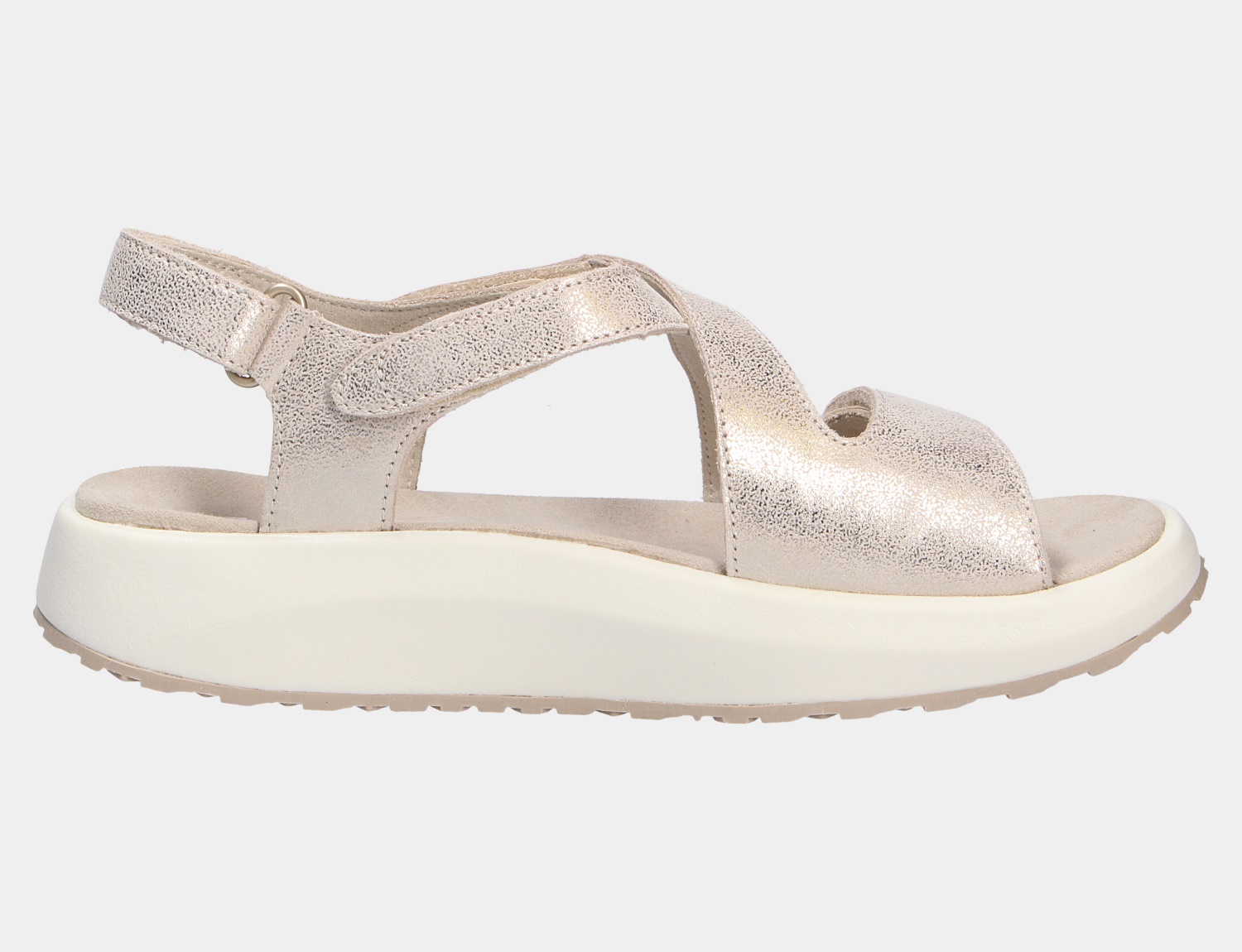 Da freut sich Ihr Fuß: Mit der Sandale JENNY LIGHT GOLD von JOYA wird laufen zum Vergnügen. Durch das hochwertige Nubukleder ist das Obermaterial wunderbar anpassungsfähig. Die angeraute Oberfläche ist besonders weich und angenehm zu tragen. Auch die textile Innenverarbeitung überzeugt durch ihre angenehm weiche Beschaffenheit. Die aus Textil bestehende Decksohle bettet den Fuß angenehm. Der Schnitt ist für breitere Füße (Weite H) geeignet. Der Absatz ist durchgehend flach ,die Sohlenkategorie emotion steht für Freude am Stehen und Gehen.Die weich-elastische Joya Sohle dämpft jeden Stoß ab und unterstützt dadurch effektiv die Entlastung von Rücken und Gelenken. Das Ergebnis: ein einzigartiger Gehkomfort. Ideal für Menschen, die sich und ihre Füße mit einem einzigartig weichen Geh-Gefühl verwöhnen wollen.Kennzeichen der emotion-Active Technologie ist die besonders breite Sohle im Fersen- und Vorfußbereich um Weichheit mit Stabilität optimal zu kombinieren. Wichtig ist diese Stabilität vor allem im Arbeits- und Outdoorbereich.Besonders geeignet für den sportiven Lifestyle und Anwendungsbereiche in Beruf und Freizeit wo die körperliche Entlastung beim Gehen und Stehen wichtig ist. Klettverschlüsse halten den Schuh sicher am Fuß und sorgen auch für die individuelle und optimale Anpassung. Die Schuhgröße fällt regulär aus.