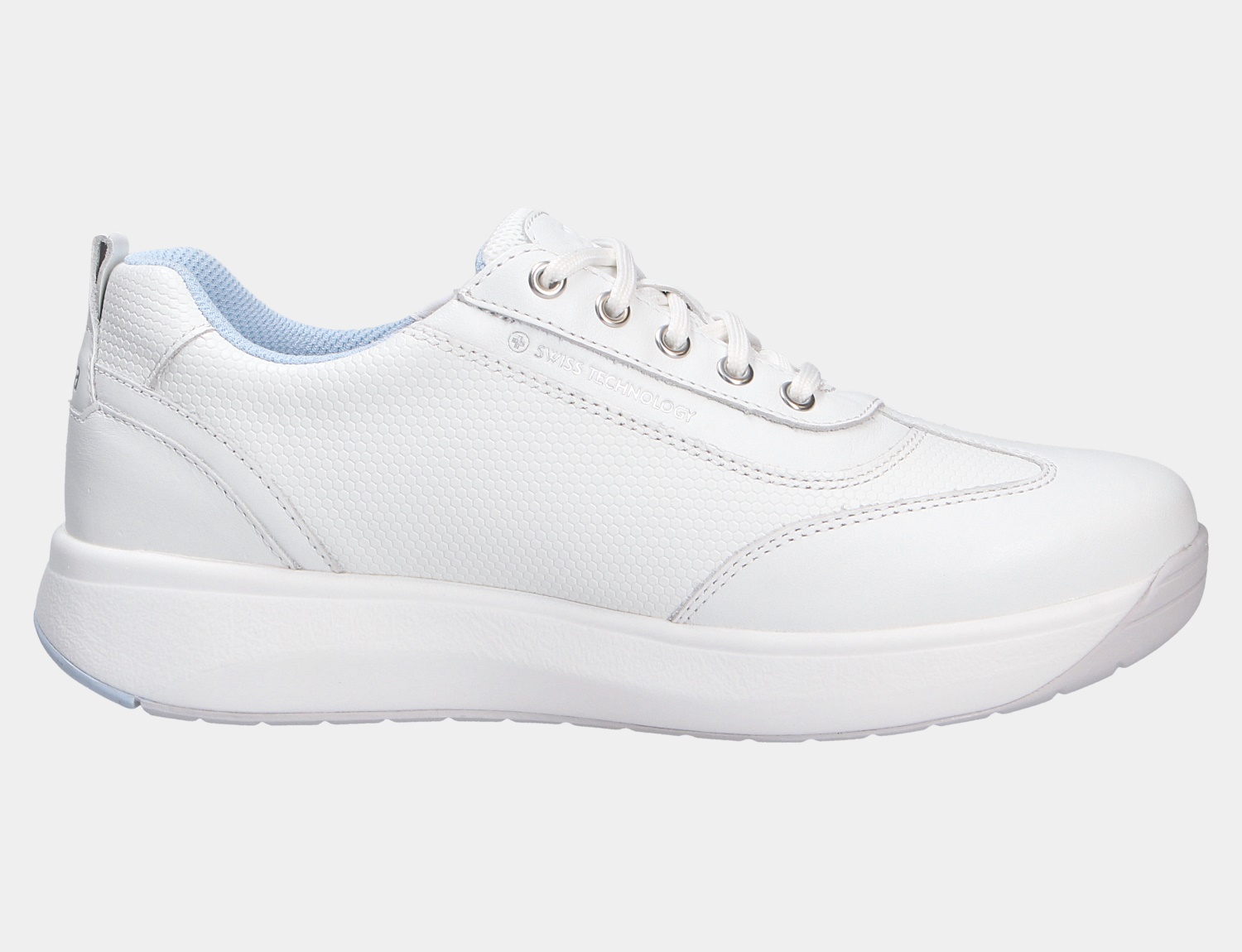 Schlichter Comfort und weiches Gehen sind beim Artikel LAURA WHITE aus dem Hause JOYA wichtige Merkmale die diese Modell auszeichnen. Angenehm weich liegt das hochwertige Glattleder am Fuß und verleiht dem Schuh einen besonderen Look. Auch die textile Innenverarbeitung überzeugt durch ihre angenehm weiche Beschaffenheit. Die patentierte Ortholite Support Einlegesohle ist sehr leicht und stark atmungsaktiv. Sie besteht aus einem PU-Schaum mit EVA-Verstärkung im Fersen- und Mittelfußbereich für zusätzliche Stabilität.Natürlich ist die Sohle herausnehm- und auswechselbar. Der Schnitt ist für breitere Füße (Weite H) geeignet. Der Absatz ist durchgehend flach ,die Sohlenkategorie emotion steht für Freude am Stehen und Gehen.Die weich-elastische Joya Sohle dämpft jeden Stoß ab und unterstützt dadurch effektiv die Entlastung von Rücken und Gelenken. Das Ergebnis: ein einzigartiger Gehkomfort. Ideal für Menschen, die sich und ihre Füße mit einem einzigartig weichen Geh-Gefühl verwöhnen wollen.Die emotion-SENSO Technologie ist besonders weich im Fersen- und Vorfußbereich und bietet durch die starke Dämpfung eine optimale Entlastung.Besonders geeignet für Menschen mit sensiblem Rücken und täglich stark belasteten Füßen und Gelenken. Eine praktische Schnürung vollendet den klassischen Look und erleichtert Ihnen den Einstieg. Durch die runde Schuhspitze wirkt der Schuh dezent am Fuß und bietet genügend Platz für die Fußzehen. Die Schuhgröße fällt regulär aus.
