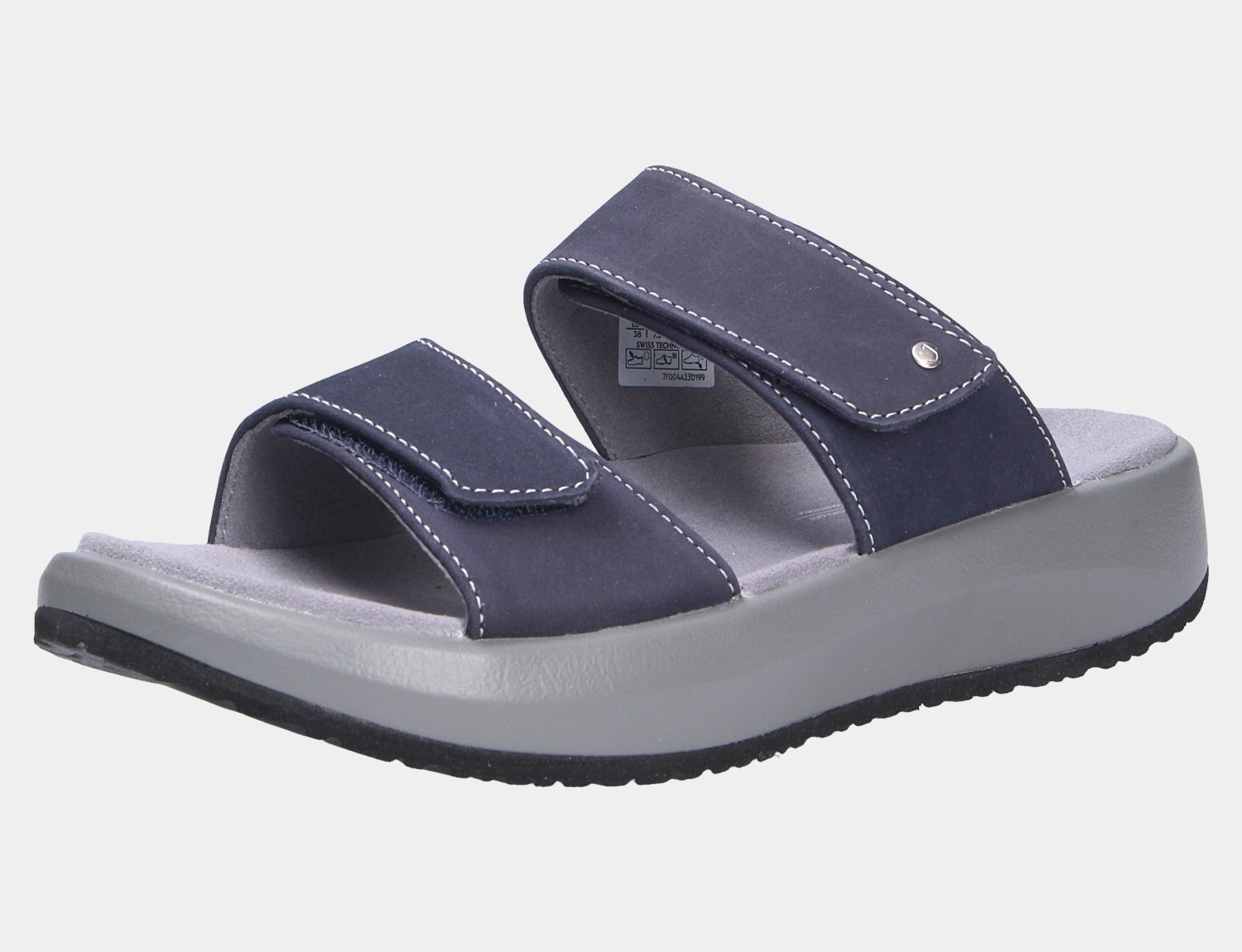 Luftig leichtes gehen mit Comfort die Pantolette VIENNA II DARK BLUE II aus dem Hause JOYA Hier wird jeder Fuß verwöhnt. Durch das hochwertige Nubukleder ist das Obermaterial wunderbar anpassungsfähig. Die angeraute Oberfläche ist besonders weich und angenehm zu tragen. Innen ist der Schuh mit einem elastischen sowie atmungsaktiven Textil augestattet. Das Fußbett ist aus Textil und nicht auswechselbar. Auf diesen Schuh freuen sich besonders etwas breitere Füße:Die Weite H bietet hier ausreichend Platz. Der Keilabsatz hat eine Höhe von cirka 1 cm ,die Sohlenkategorie emotion steht für Freude am Stehen und Gehen.Die weich-elastische Joya Sohle dämpft jeden Stoß ab und unterstützt dadurch effektiv die Entlastung von Rücken und Gelenken. Das Ergebnis: ein einzigartiger Gehkomfort. Ideal für Menschen, die sich und ihre Füße mit einem einzigartig weichen Geh-Gefühl verwöhnen wollen.Kennzeichen der emotion-Active Technologie ist die besonders breite Sohle im Fersen- und Vorfußbereich um Weichheit mit Stabilität optimal zu kombinieren. Wichtig ist diese Stabilität vor allem im Arbeits- und Outdoorbereich.Besonders geeignet für den sportiven Lifestyle und Anwendungsbereiche in Beruf und Freizeit wo die körperliche Entlastung beim Gehen und Stehen wichtig ist. Klettverschlüsse halten den Schuh sicher am Fuß und sorgen auch für die individuelle und optimale Anpassung. Die karree-förmige Schuhform hat zwei Vorteile: Sie wirkt sportlich und bietet einen angenehmen Tragecomfort für den Fuß und die Fußzehen. Die Schuhgröße fällt groß aus - bitte eine ganze Größe kleiner bestellen.
