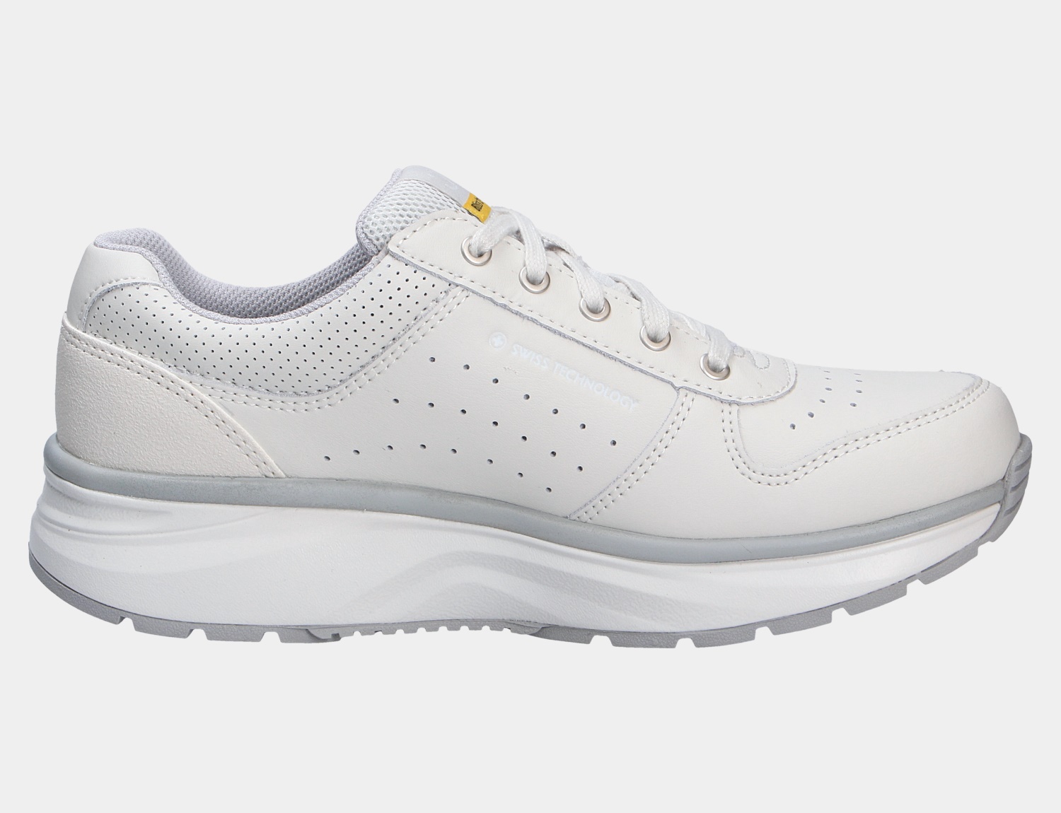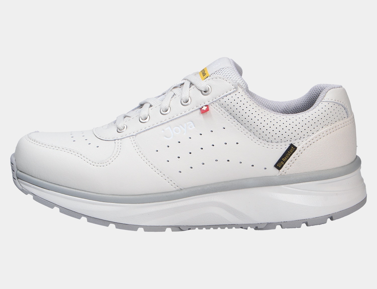 Schlichter Comfort und weiches Gehen sind beim Artikel DYNAMO III W SR WHITE der Marke JOYA wichtige Merkmale die diese Modell auszeichnen. Angenehm weich liegt das hochwertige Glattleder am Fuß und verleiht dem Schuh einen besonderen Look. Innen ist der Schuh mit einer Leder-Textilkombination augestattet. Die OrthoLite Support Einlegesohle ist sehr leicht und stark atmungsaktiv. Sie besteht aus einem PU-Schaum mit EVA-Verstärkung im Fersen- und Mittelfußbereich für zusätzliche Stabilität.Natürlich ist die Sohle herausnehm- und auswechselbar. Auf diesen Schuh freuen sich besonders etwas breitere Füße:Die Weite H bietet hier ausreichend Platz. Der Absatz ist durchgehend flach ,die Sohlenkategorie emotion steht für Freude am Stehen und Gehen.Die weich-elastische Joya Sohle dämpft jeden Stoß ab und unterstützt dadurch effektiv die Entlastung von Rücken und Gelenken. Das Ergebnis: ein einzigartiger Gehkomfort. Ideal für Menschen, die sich und ihre Füße mit einem einzigartig weichen Geh-Gefühl verwöhnen wollen.Kennzeichen der emotion-Active Technologie ist die besonders breite Sohle im Fersen- und Vorfußbereich um Weichheit mit Stabilität optimal zu kombinieren. Wichtig ist diese Stabilität vor allem im Arbeits- und Outdoorbereich.Besonders geeignet für den sportiven Lifestyle und Anwendungsbereiche in Beruf und Freizeit wo die körperliche Entlastung beim Gehen und Stehen wichtig ist. Über den Schnürverschluß ist eine optimale Anpassung an den Fuß möglich. Die karree-förmige Schuhform hat zwei Vorteile: Sie wirkt sportlich und bietet einen angenehmen Tragecomfort für den Fuß und die Fußzehen. Die Schuhgröße fällt regulär aus.